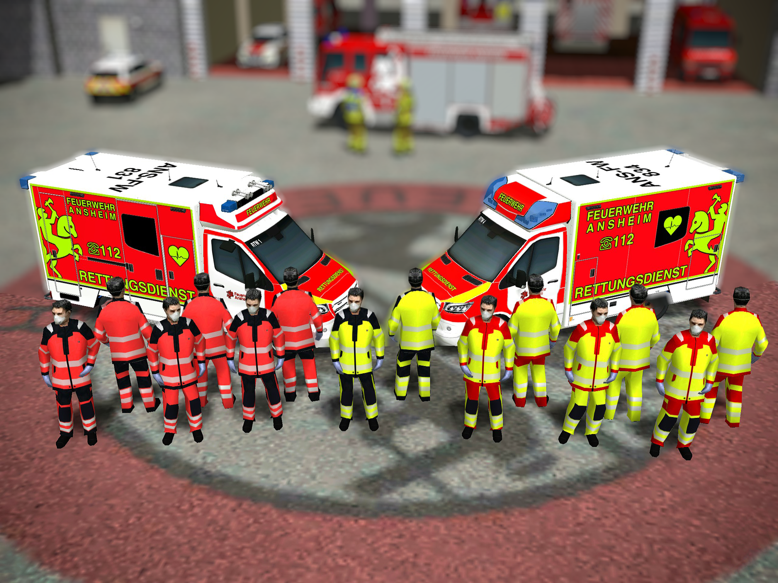 Im Paket gibt es Skins der GSG Apollon Serie. Als Jacke ist immer die Hardshell-Variante gewählt. Die Skins passen auf die Rettungsdienstmitarbeiter aus BFEMP.