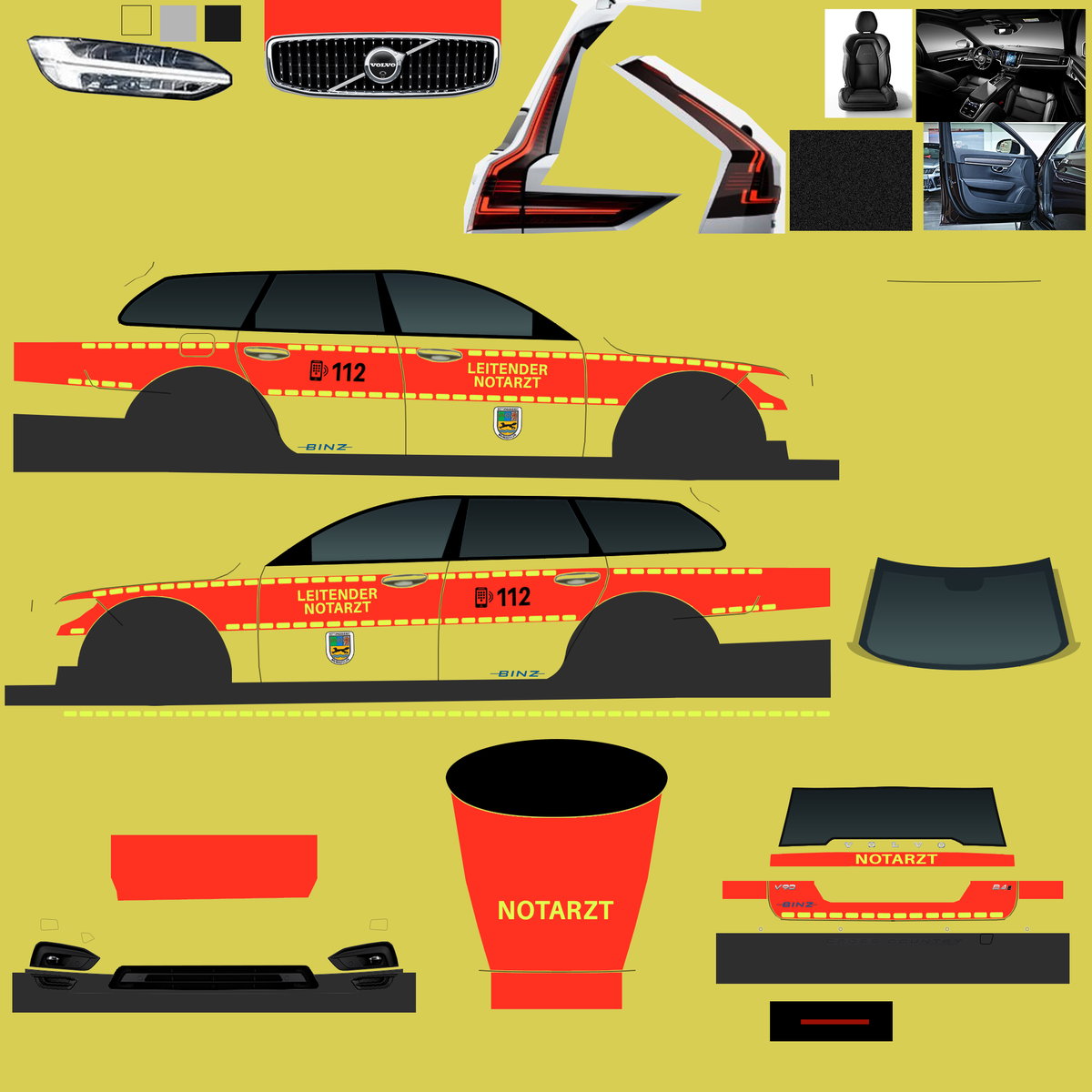 Autoren: Volvo V90 CC - v.o.j (GNU GPL) Lights - B4mbo0 Whelen Defender + Mirror Beam - Itchyboy Skin - Flo17 Bitte beachtet die Nutzungsbedingungen der einzelnen Autoren!