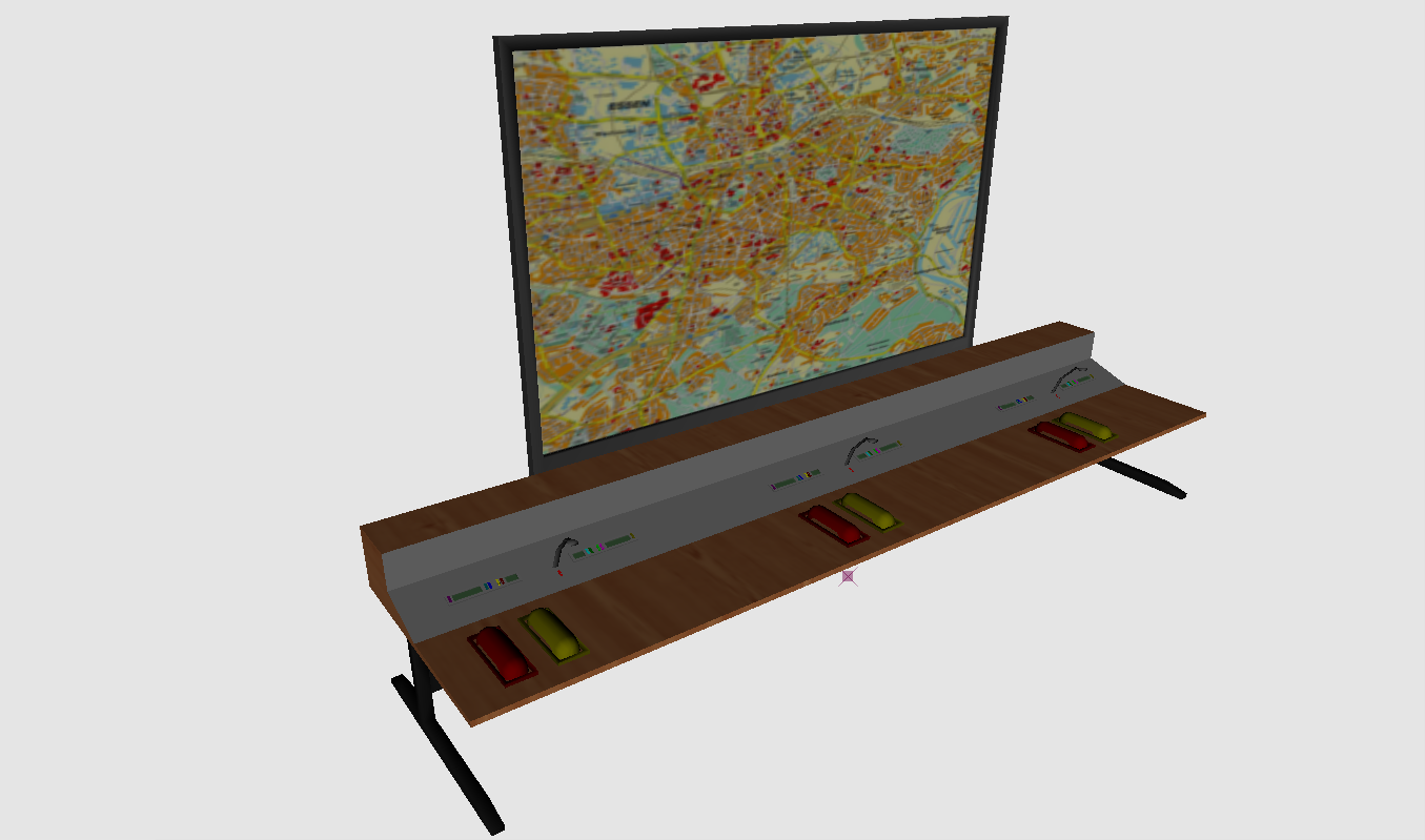 Ein Funktisch wie er in den 80er Jahren in manchen Leitstellen verwendet wurde. Das Modell ist 2013 als eines meiner ersten Versuche im 3D Bereich entstanden.