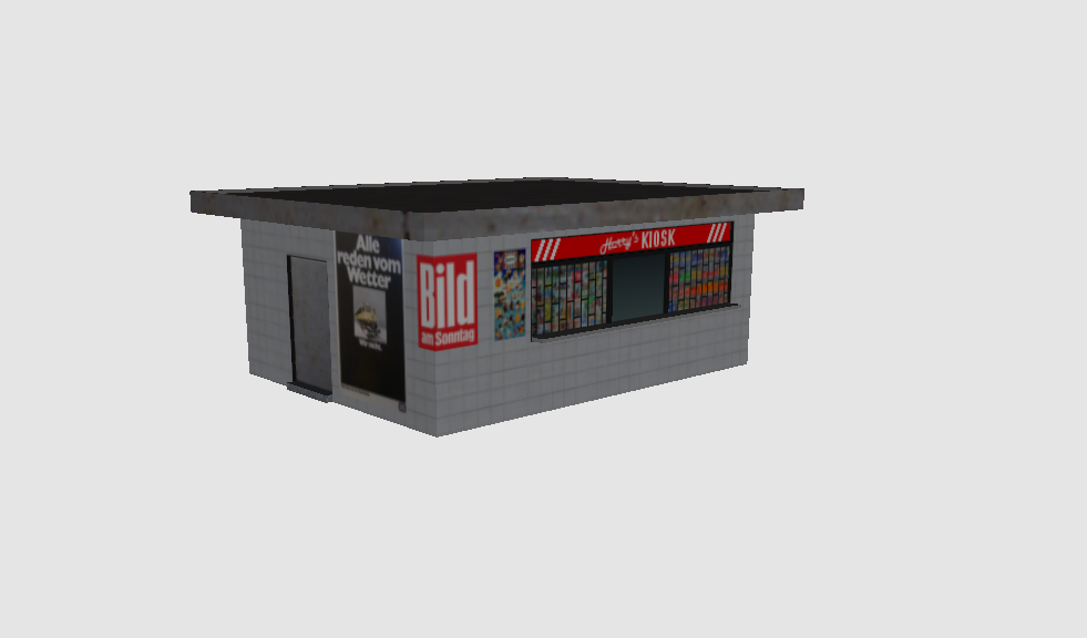 Ein Kiosk wie er in den 80er Jahren in manchen Städten zu finden war. Das Modell ist 2013 als eines meiner ersten Versuche im 3D Bereich entstanden.