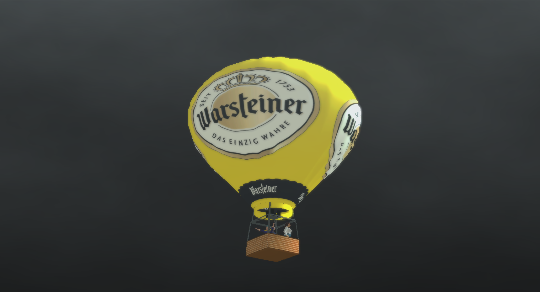 Ein Heissluftballon mit Werbung für Warsteiner