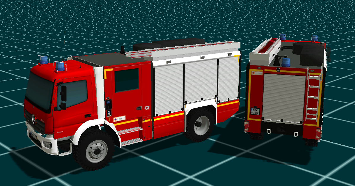 Katastrophenschutz Löschgruppenfahrzeug der Fa. Rosenbauer aufgebaut auf einem Mercedes Atego. Das Fahrzeug ist nach dem BFE Standard (Türen, Rollos) ausgebaut und Skaliert.