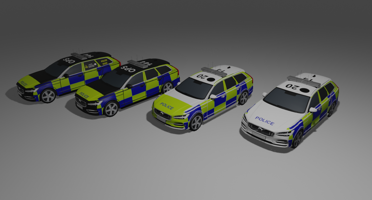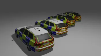 Here you can find a small pack of volvo v90 with basic liveries for the uk police that can be personalized based on the needs.