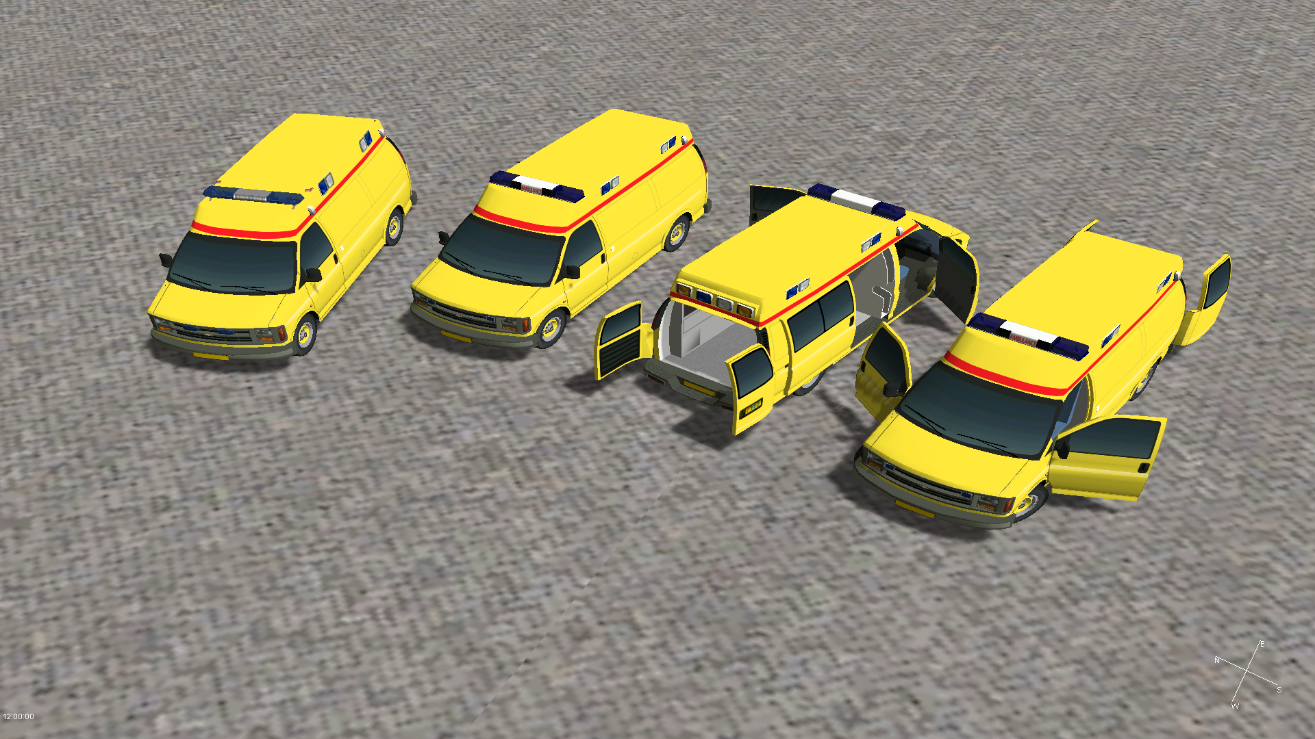 De Chevrolet GMT600 Ambulances zoals deze 20 jaar geleden ingezet werden. In de set zitten zowel de variant uit de late 90er jaren en de variant uit de vroege 00er jaren met de flitser voor in de grill en de vernieuwde dakopbouw. De voertuigen zijn op personenformaat gescaled. De zijdeur is van een animatie voorzien, de frames hiervan zitten er ook bij mocht de animatie bij het scalen verloren gaan. Om het skinnen makkelijk te houden zit ook het werkbestand van de skin in de set. Verder zijn ook beide balken, de Pintsch Bamag Topas WG en de Code3 XL9000 Regular in de set te vinden. Veel plezier ermee.