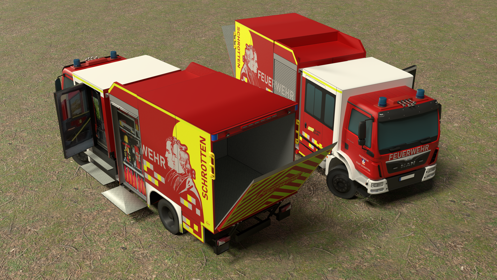 Ein TSF-W/L der Firma Walser. Inspiriert ist es von dem Fahrzeug der FF Künzell-Dirlos. Anbei liegen bereits Skindateien der fiktiven Stadt Schrotten, dessen Design der Feuerwehr Hanau in Hessen nachempfunden ist.