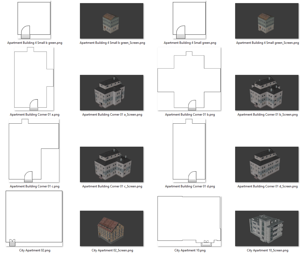 ACHTUNG: Der Umfang wird noch erweitert! Es handelt sich um die ersten 45 Gebäude mitsamt Grundriss für die Bodentextur!