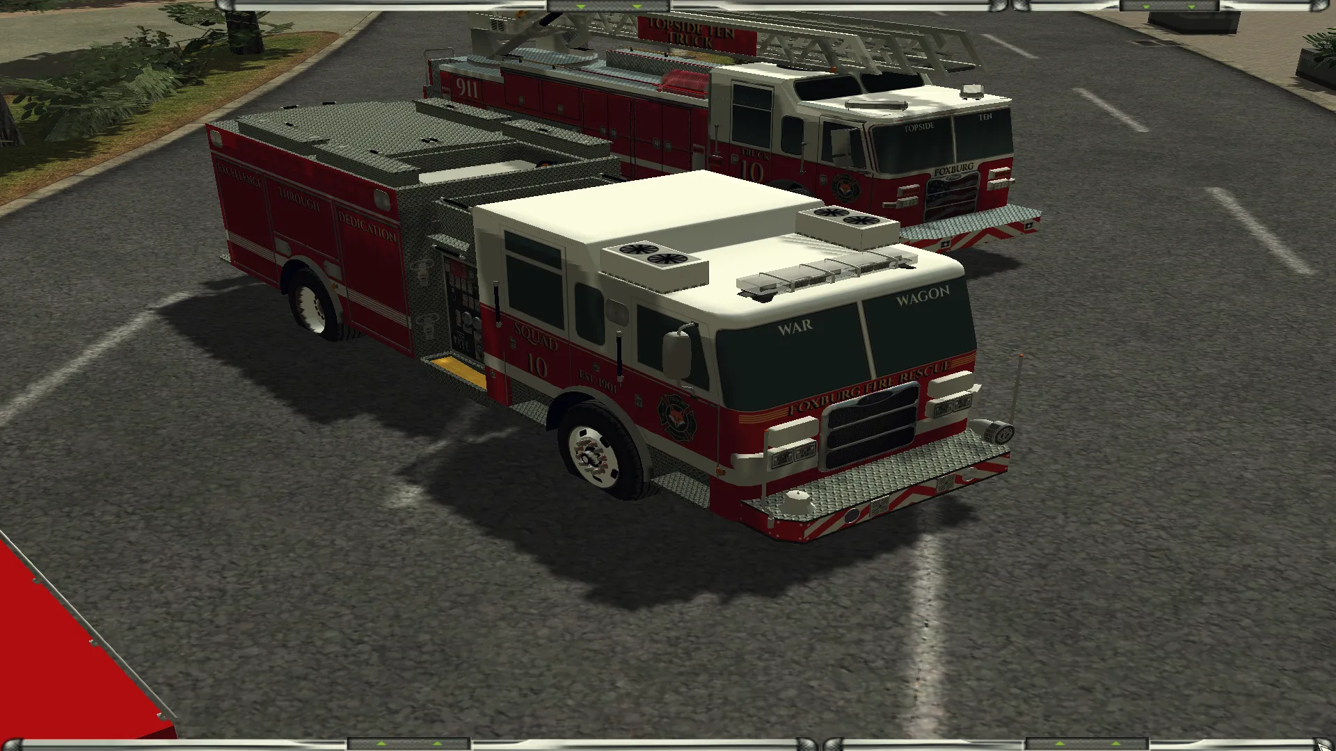 Hier das Arbeitspferd der Wache. Das nähest was man in Amerika zu einem HLF findet. Führt 1800 Liter Wasser sowie Material zur Brandbekämpfung und Technischen Hilfeleistung mit. Diese "Squad Company" ist die einzige Einheit in der Modifikation die eigenständig die Brandbekämpfung und Menschen Rettung bei einem VU durchführen könnte. Besetzt 1/3.