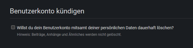 Wenn ich eine Frage habe, speziell eine so wichtige in Zeiten von DSGVO und co. dann ist die EINZIGE adäquate, erste Antwort: Eine Lösung. Keine Witze, keine Ironie, keine (nicht zielführenden) Fragen. Ich hatte ja fast damit gerechnet das vor der Lösung noch ein "Warum willst du dich den Löschen?" kommt. Zum Glück kann auch ich mich irren. Aber der Generationenspruch sagt eigentlich auch schon alles was ich dazu wissen muss. Gute Reise, Frohe Weihnachten.
