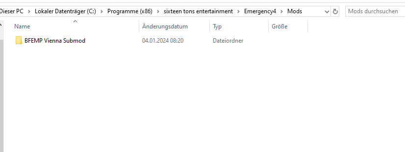 Testweise habe ich die Mod umbenannt in "BFEMP Vienna 2", sprich "BFEMP Submod Austria" und "BFEMP Vienna" sind die Mods, bei denen nur die veränderten Fahrzeuge enthalten sind, und die eigentlich nicht im Modordner sind, da sie gar nicht existieren.