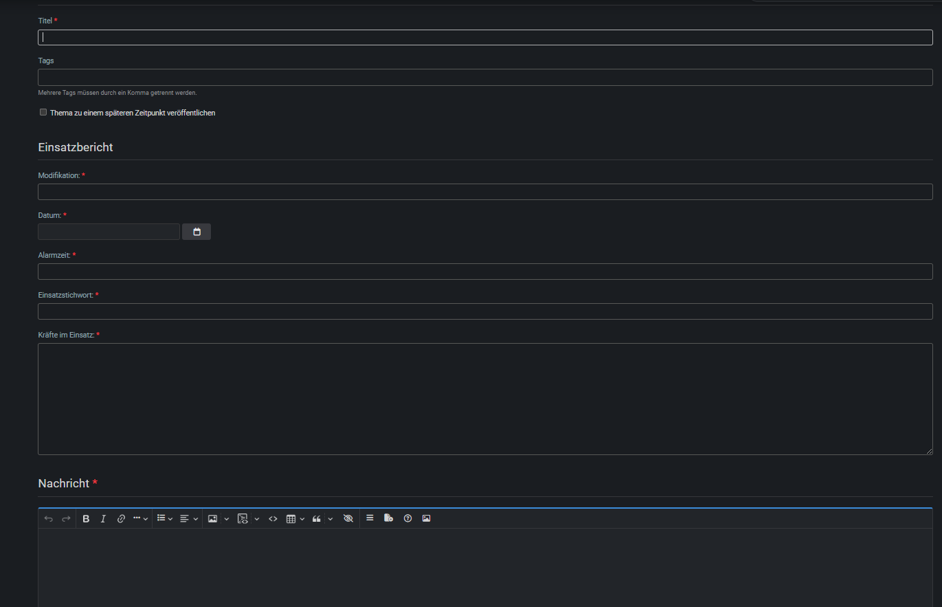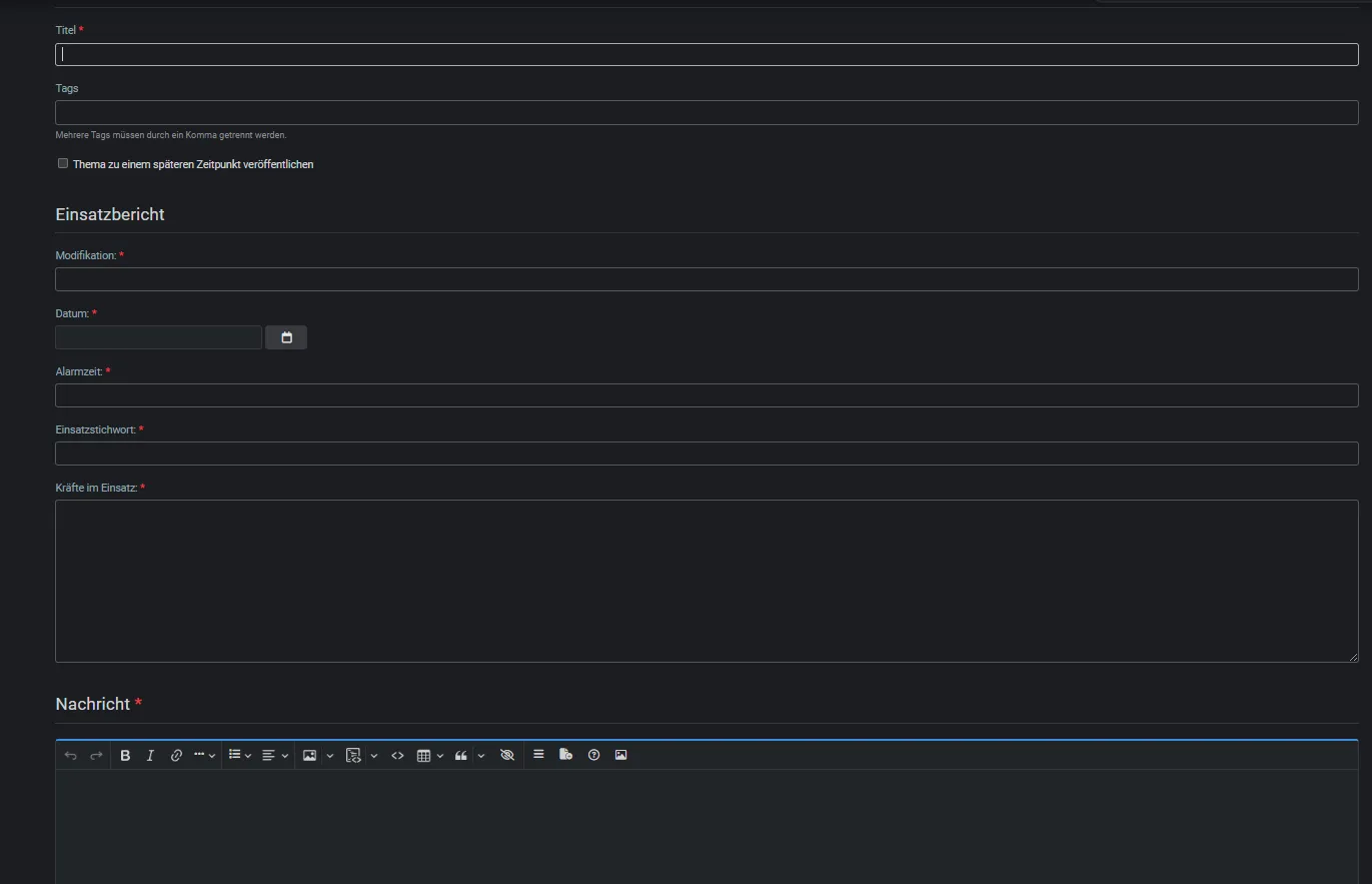 Ich eröffne mal einen Thread unter welchem ihr eure Einsatzberichte teilen könnt. Ich denke, dass das Effizienter ist (jetzt wo es keinen eigenen Bereich mehr dafür gibt) als für jeden Einsatzbericht einen Thread zu erstellen. Frohes schreiben! ![]()