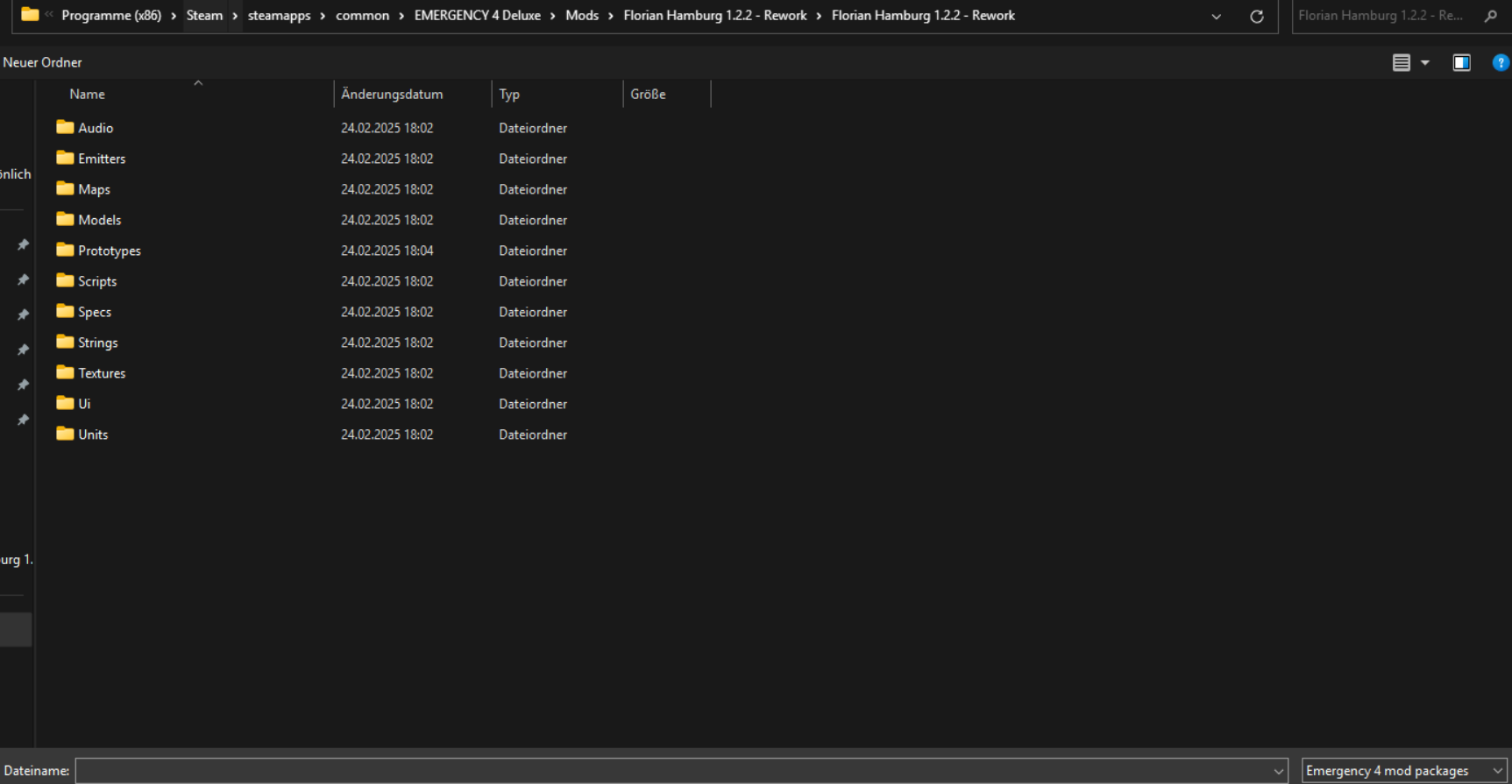 Die *rar-Datei wurde mittel 7-Zip entpackt und im entsprechenden Mod-Ordner hinterlegt. Dann folgt über den Mod-Installer das obig aufgeführte Problem. Ich klicke mich dann nur durch die Unterordner... Bin inzwischen mega genervt.