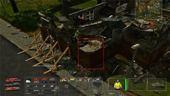 Beim Einsatz Eingestürztes Haus ist in einer Treppe in der Ecke ein Verletzter, an die man nicht ran kommt. Mein LNA ist beim Sichten an den Punkt gelaufen, wo der liegen soll. Wenn ich ganz nah ranzoome, befindet sich unter der Treppe der Verletzte, welcher wiederum unter einem Stein liegt. So wie auch die anderen Personen im und ums Haus verteilt. Ich hab alles probiert. Kran, THW, DLK, Hubschrauber, alle Arten von Equipment und alle mir bekannten Tricks, aber man kommt ums Verrecken nicht dran. Den Einsatz kann ich dementsprechend nur manuell beenden