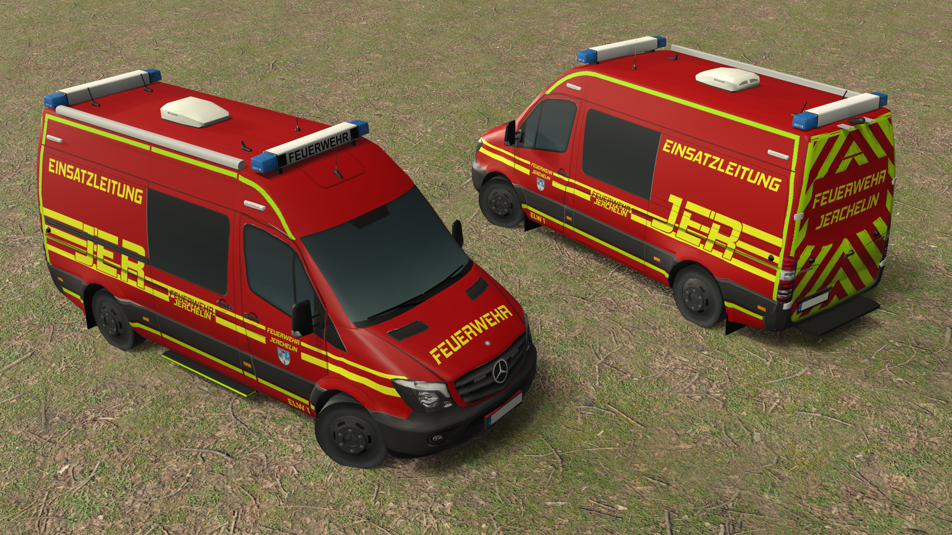 Seit Längerem habe ich mir neben Nordhagen den Landkreis Nordhagen genauer angeschaut und überlegt. Die größte Stadt im Landkreis ist mit rund 56.000 Einwohnern die Stadt Jerchelin. Neben der Innenstadt, vielen Wald- und Flächengebieten sowie kleineren Industrien ist vor allem die A14-Autobahn und die B80 ein großes Einsatzgebiet aufgrund von Verkehrsunfällen. Tagsüber durch hauptamtliche Kräfte besetzt, nachts durch freiwillige, ist der ELW 1 der Ortsfeuerwehr im Einsatz. Dieser basiert auf einem Sprinter mit Ausbau der Firma "Martin Schäfer GmbH". Zusammen mit zwei weiteren Fahrzeugen bildet das Fahrzeug die Führungsstruktur in Jerchelin, wodurch es zu jeglichen Einsätzen mit alarmiert wird.
