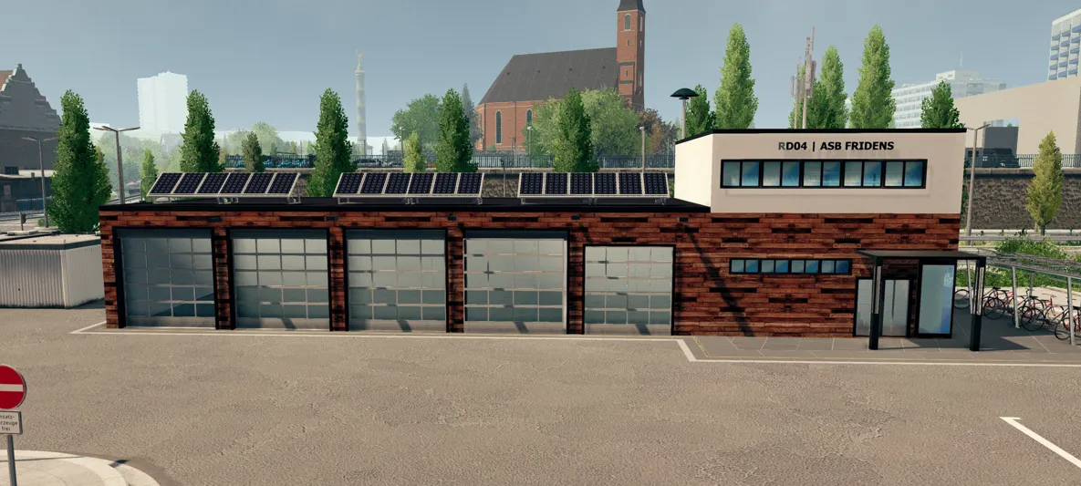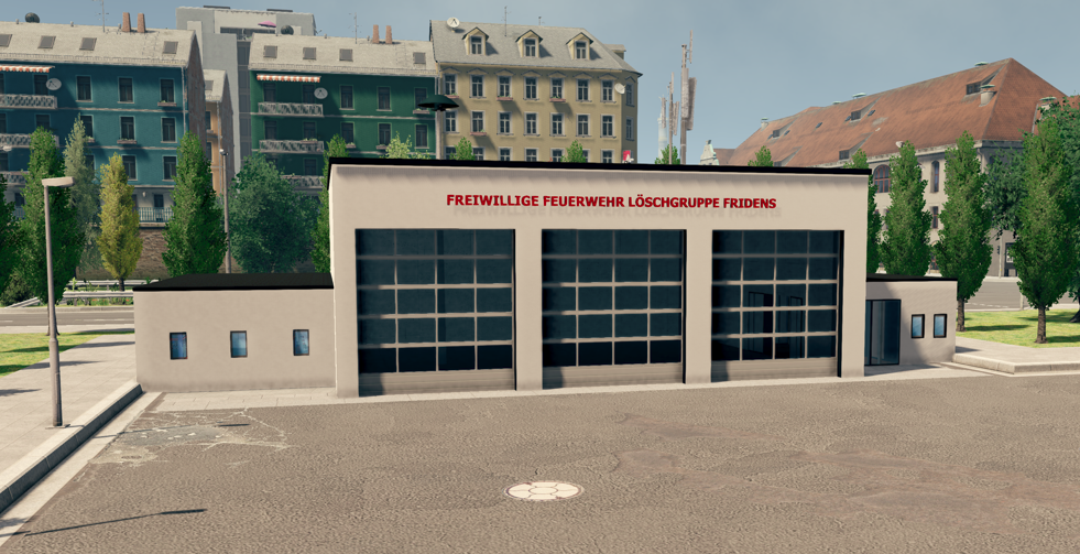 Das war mein erstes wirkliches 3D-Modell für die Karte "Brandstedt". Die Wache besteht einerseits aus dem BF-Trakt (vorne), den RD-Trakt (links), den KAT-Trakt (rechts) und den Verwaltungstrakt mit Leitstelle (hinten). Eventuell hab ich das Ding damals minimal zu groß gebaut :D Nach dem Bau des Modells merkte ich jedenfalls, dass ich doch bei gewissen Proportionen aufpassen muss :D Glas-Flächen kann man in EM5 schön definieren, wodurch man dann auch "durchschauen" und das Innere sehen kann. Die Wachen sind grundsätzlich auch alle Open-House tauglich gebaut.