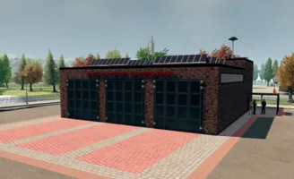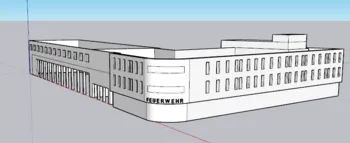 Wir brauchten ein Modell, dass Platz für die FF14 und den RD06 bietet. Sie soll relativ kompakt sein, aber dennoch für beide Wachen Platz bieten. Inspiration gab es damals vom Feuerwehrhaus Coswig. Das Ergebnis seht ihr hier:
