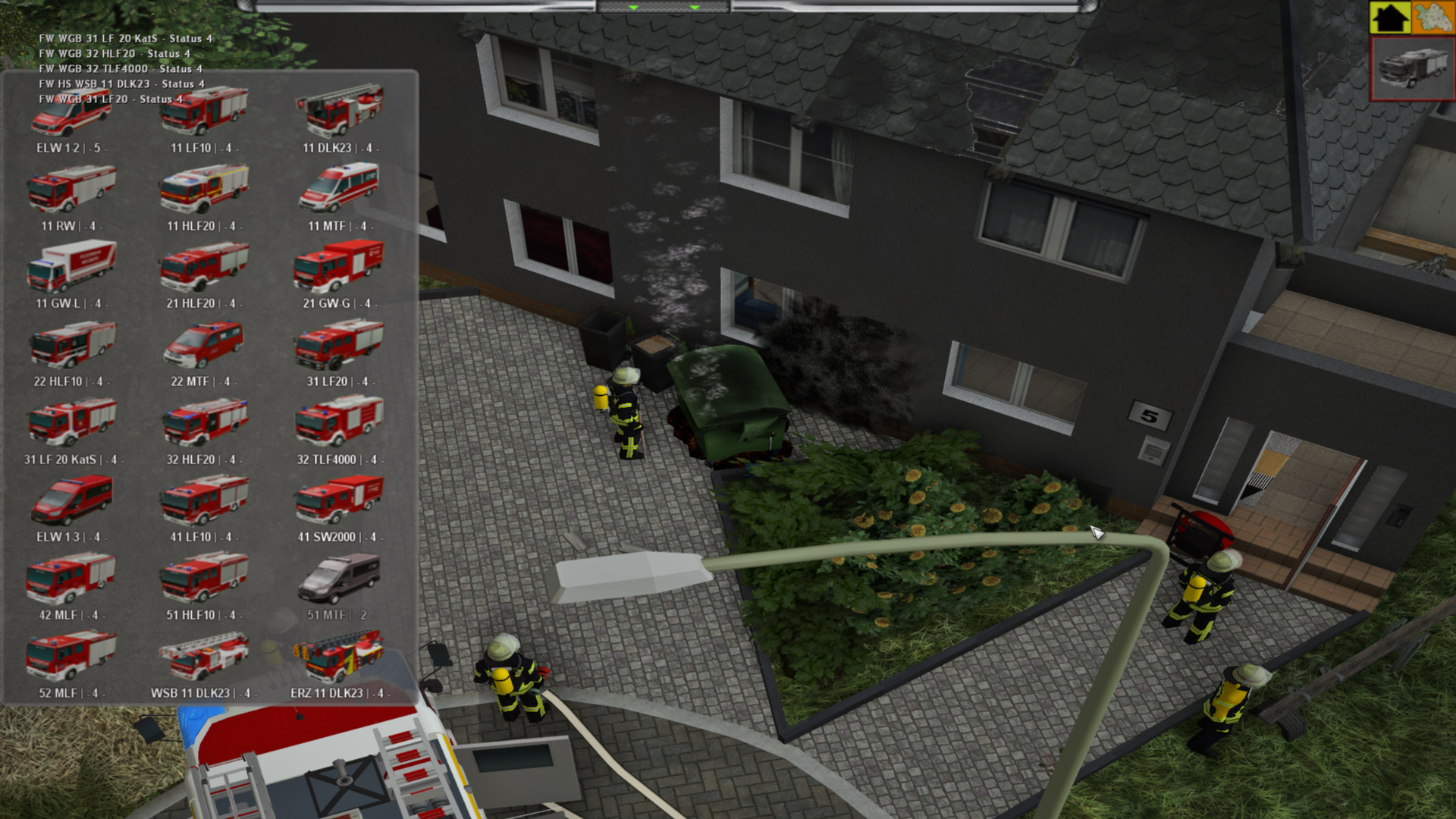 Mülltonnen, die am Haus waren und Gebüsch am Haus hatte sich auch entzündet , dies hat sich aber aufgrund der Riegelstellung rund um das Haus nicht ausbreiten können. Die Mülltonnen wurden später ordnungsgemäß gelöscht.