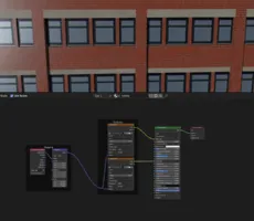 Um resourcenintensives UV-Mapping zu umgehen, nutzt das Material für die Fassade ein Texture Coordinate Mapping, um das PBR Material auf das Mesh zu projizieren.