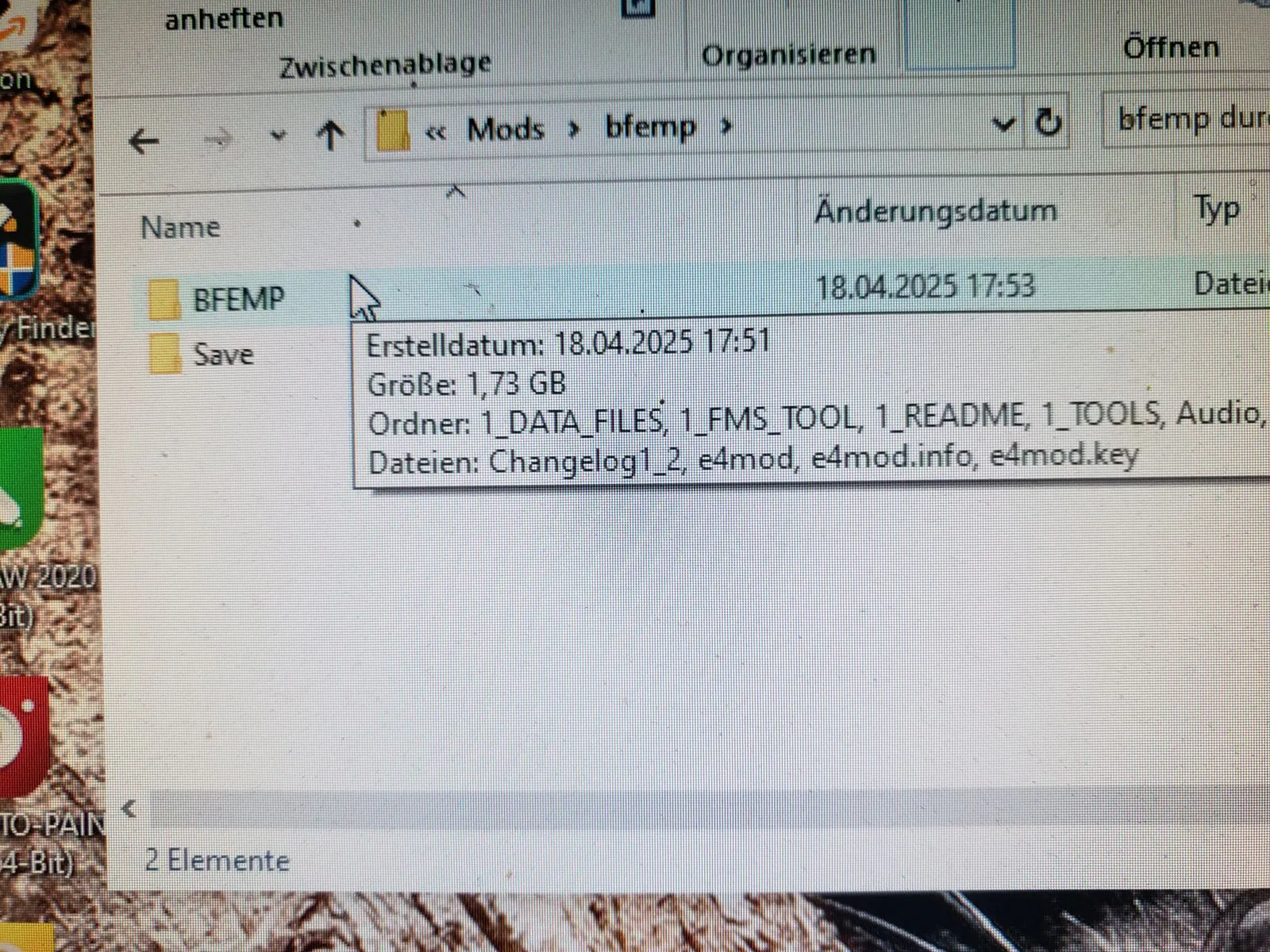 Mach mal ein Bild von dem Inhalt deines BFEMP Ordners, auf welchem man oben in der Leiste den Ordnerpfad erkennen kann.