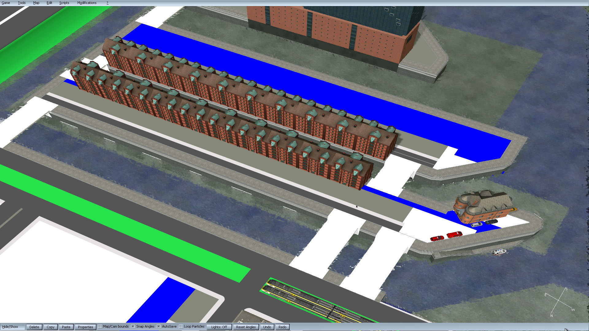 Die Brücken und Kaimauern sind gesetzt, wobei es sich hier auch nur um Platzhalter handelt.
