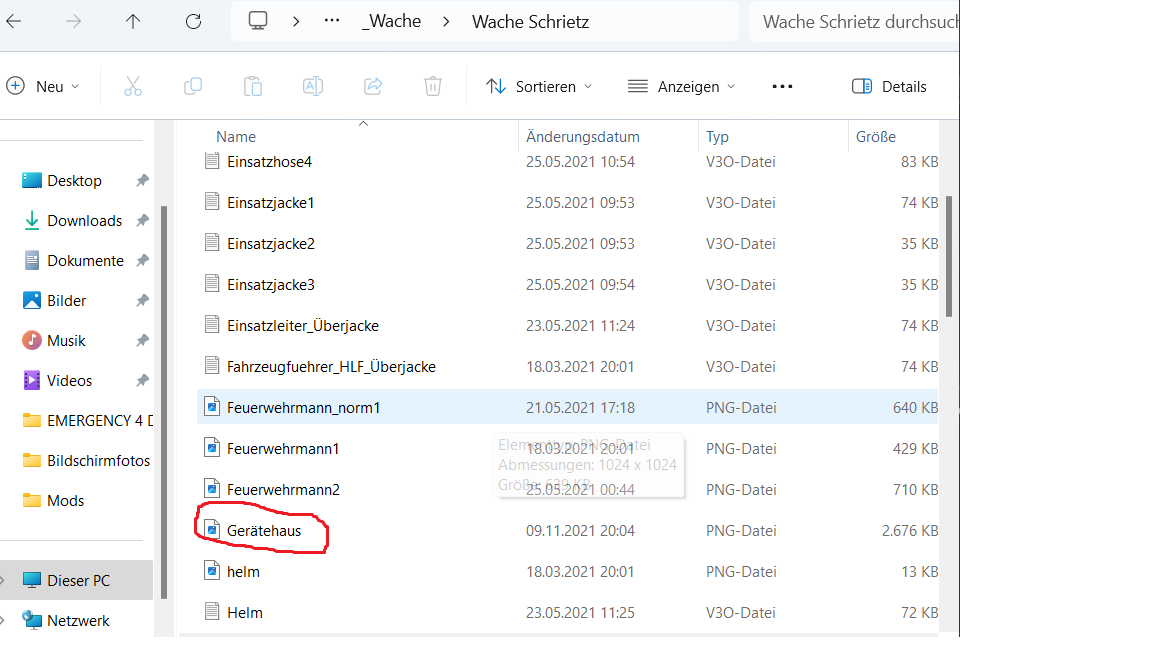 Im Mod Ordner : Objects-Models- Wache- Wache Schrietz dort "Geratehaus" in "Gerätehaus" umbenennen.