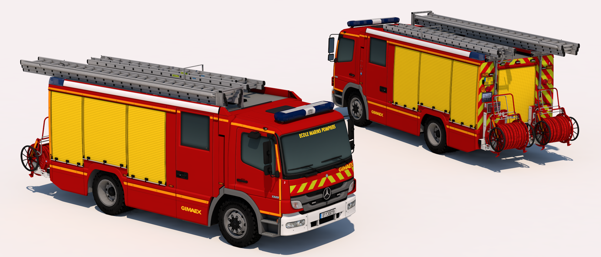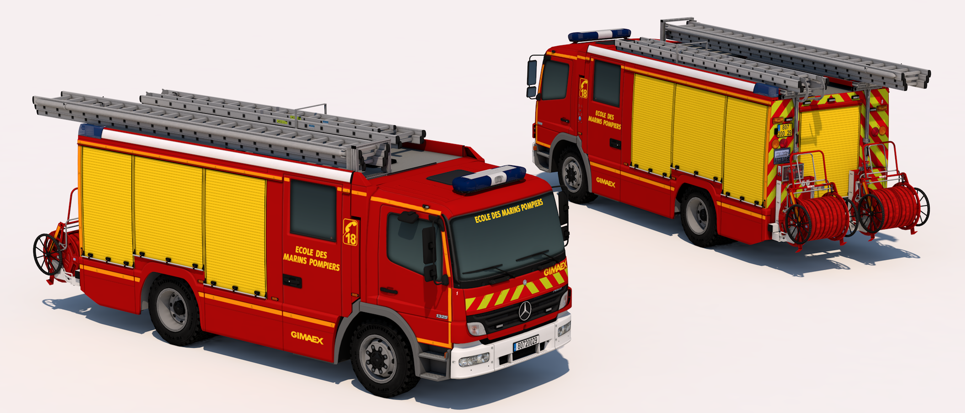 We've made one of the numerous versions of the operationnal vehicle, there was 18 models of this one. The 2 others are a bit different since they are for the school, they have military plate, slightly different text, different lightbar and removed the BMPM logo. For the school vehicles, there have been 2 models of the normal Atego and only 1 facelift.