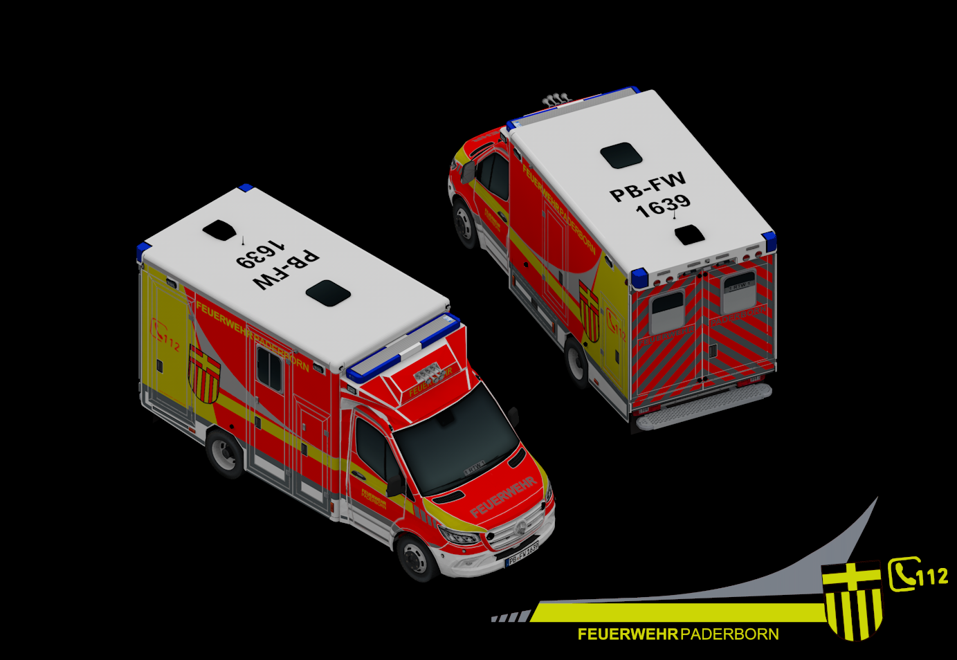 Hierbei handelt es sich um den neusten RTW unserer Wache mit GSF Koffer. Transparents habe ich im Jahr 2024 im Render immer noch nicht entdeckt