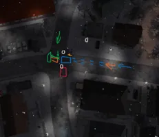 Der Ford der in der Skizze Grün dargestellt ist, kam aus Nördlicher Richtung und befuhr die Kreuzung bei Grün in Richtung Süden. Mit Über 60 Km/h fuhr das in der Skizze Orange Dargestellte Fahrzeuge über die Ihm Rot Zeigende Ampel aus Östlicher Richtung in Richtung Westen. Dabei Erfasste dieser denn Ford, der Zusammenstoß Punkt wurde hier mit einen Grünen X Dargestellt. Der Fahrer des Silbernen Mercedes in der Skizze Blau dargestllt fuhr ebenfalls mit überhöhter Geschwindigkeit und konnte denn vor Ihn Verunfallten Wagen nicht mehr ausweichen. Wie zu erkennen Versuchte der Fahrer des Mercedes noch zu Bremsen, dies Gelang Ihn auf grund der Witterung und zum Teil vereisten Straße nicht. So das dieser denn Schwarzen PKW hinten Rechts erwischte. Weiß Dargestllt sind die Verletzten. Wo von 2 ins Krankenhaus nach Fuchsburg gebracht wurden. Der Fahrer vom Gelben Audi der als Ertshelfer in der Skizze Rot dargestllt, Helfen wollte erlitt einen Schock, dieser musste jedoch nicht in Krankenhaus. Nach der Spuren Lage und Zeugen Aussagen hatte der Fahrer vom Schwarzen PKW denn Silbernen Mercedes Fahrer einige straßen vorher schon mehrmals bedrängt und Ihn Überholt. Auß diesen Grund geht die Polizei davon aus, dass hier die Provakante Fahrweise vom Mercedes sowie vom Schwarzen PKW zu diesen Tragischen Unfall mit einem Toten führte.