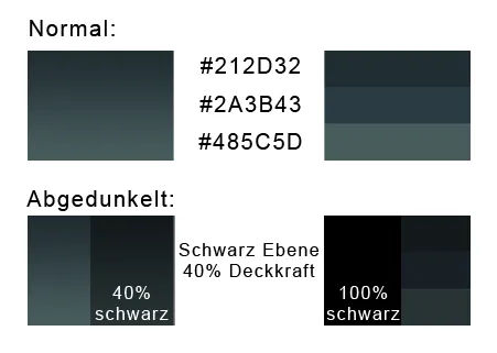 Die Scheibennorm sieht einen farbigen Verlauf für Glasscheiben vor. Dabei ist der dunklere Part der Scheibe im oberen Bereich, der eher hellere ist dagegen immer unten zu finden. Die Werte, welche in nachfolgender Grafik vermerkt sind, sind als Hex-Werte angegeben. Alle gängigen Grafikprogrammen können mit diesen Werten arbeiten.