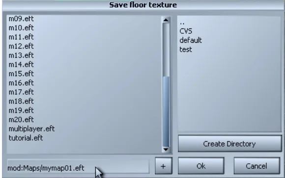 - Verzeichnis und Dateiname der konvertierten EFT-Datei (EFT = EMERGENCY-Floor-Texture) wählen, z.B. „Maps/test“ -> Auf OK klicken (s. Abb. 2)