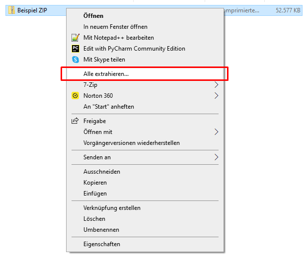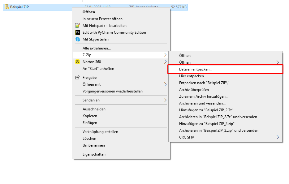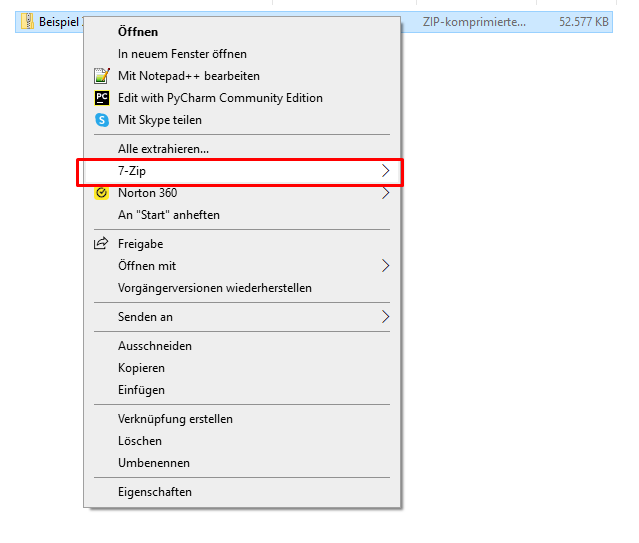 Deshalb sind hier auch nur die Windows Standard Option und 7Zip aufgelistet, da ich WinRar nicht nutze.