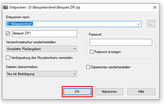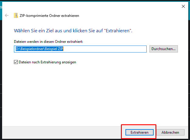 Rechte Maustaste auf die zu Entpackende ZIP Datei -> linke Maustaste auf "Dateien entpacken..." -> den Ordner auswählen in den die ZIP Datei Entpackt wird (ich lasse persönlich einfach immer den Ordner den es mir Vorschlägt) -> Linke Maustaste auf "OK" -> und dann habt ihr im Ziel Ordner direkt die Extrahierten Dateien