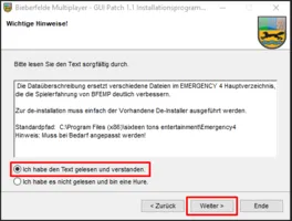 Download des GUI -> Entpacken der ZIP Datei in der sich das GUI befindet -> Öffnen der "gui_installer_11" Anwendung -> geht auf "Weiter" -> auf der nächsten Seite ebenfalls auf "Weiter" -> "Lest euch den Text sorgfältig durch" -> Wenn ihr mit dem Text Inhalt einverstanden seid, könnt ihr "Ich habe den Text gelesen und verstanden" auswählen und auf "Weiter" -> dann müsst ihr den "Data" Ordner in eurer EM4 Installation aussuchen (wie ihr eure EM4 Installation findet, könnt ihr aus diesem Post Entnehmen: Logfile finden) -> dann wählt ihr "Start" aus und das GUI wird Installiert -> es läuft ein Ladebalken durch, diesen bitte abwarten! Wenn der Ladebalken fertig durchgelaufen ist, könnt ihr das Fenster mit "Weiter" Quittieren -> Die letzte Seite könnt ihr nun mit "Ende" schließen